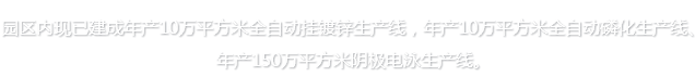 特點(diǎn): 采用美國(guó)PPG公司的環(huán)保型陽(yáng)離子陰極電泳涂料(符合歐盟ROHS環(huán)保指標(biāo)要求),產(chǎn)品鹽霧性、附著力、耐沖擊、耐彎曲性等方面居于同行業(yè)領(lǐng)先地位。 產(chǎn)能: 150萬平方米/年。